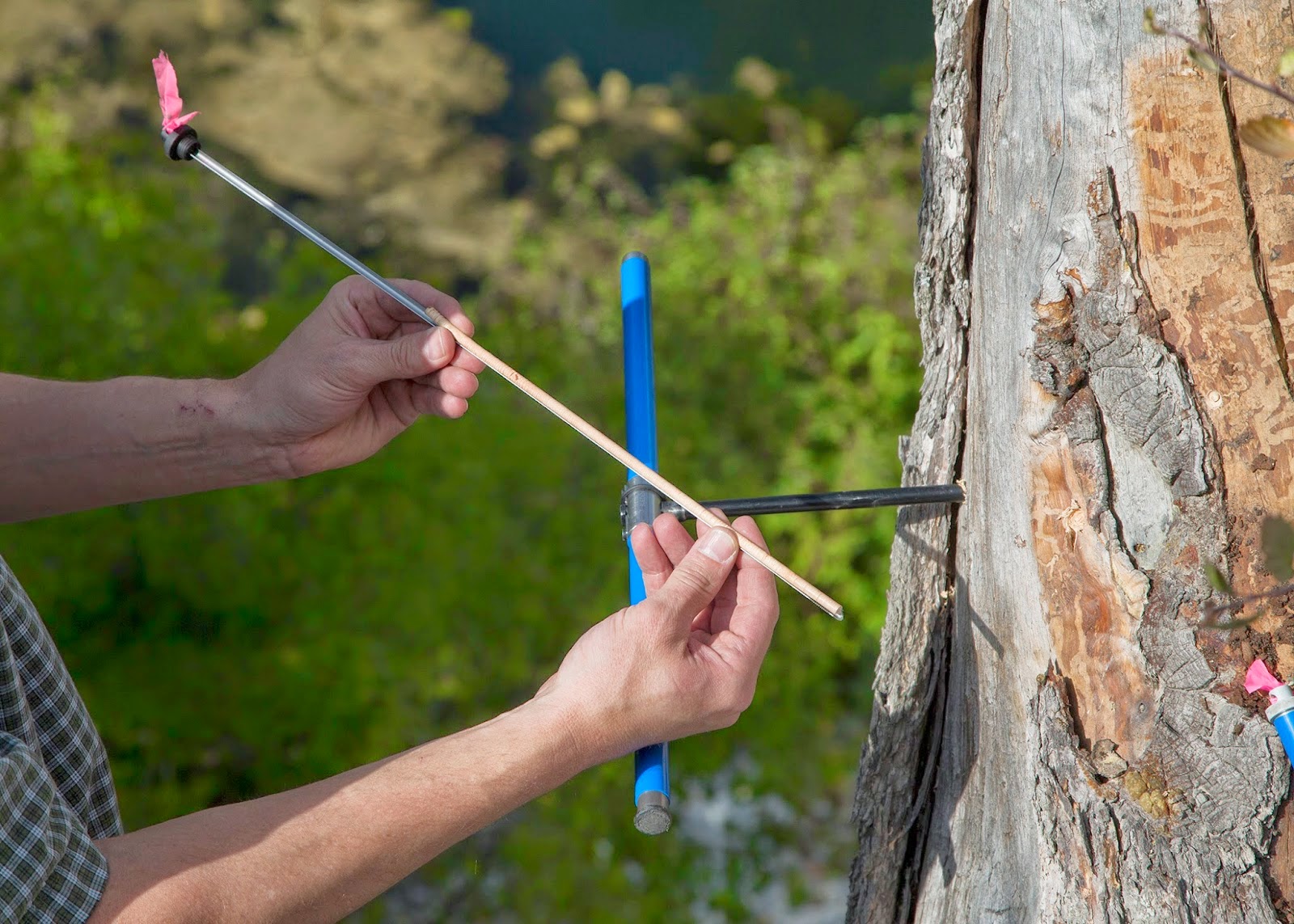Professor Bekker extracts a core sample from a dead tree in Provo canyon [Credit: Brigham Young University]