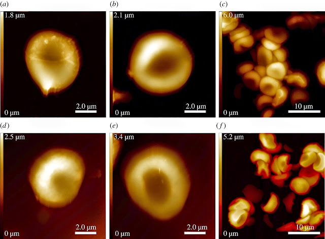 Each minute movement of the probe was recorded with a laser, "so you get a three-dimensional image of the sample in a very tiny scale," Zink explained. The scans revealed classic "doughnut shape" red blood cells, the team reported Wednesday in the journal Interface.
