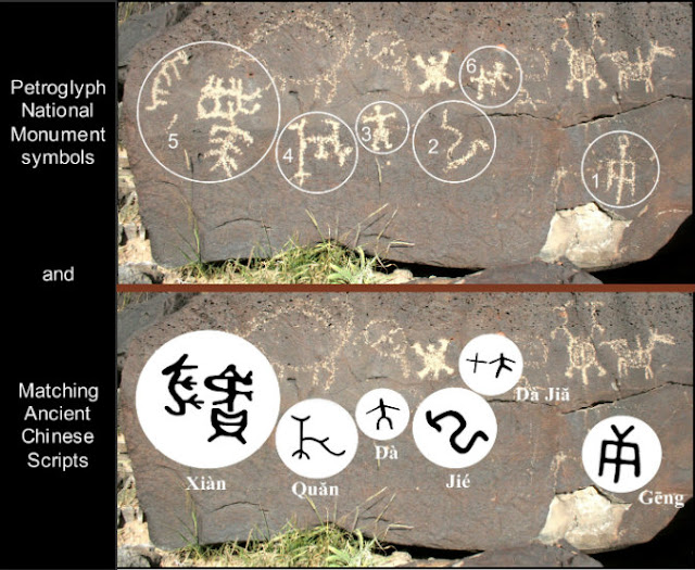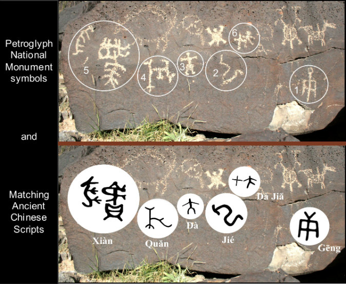 Some of the symbols found in the petroglyphs are common to both Chinese script and ancient Native American writing.