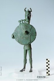 | Il profilo meno 'elegante' del bronzetto sardo è anche il più rivelatore di dettagli. Circa le corna del copricapo di questo personaggio, sarà dedicato presto un prossimo articolo più esplicativo, |