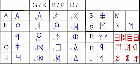 | Glifi Istmiani dalla Stele di Mojorra (le due colonne sulla destra) |