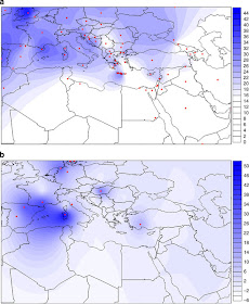 | Figura 2: Aplotipi di mtDNA Minoici in popolazioni attuali e remote. |