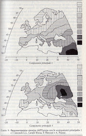 Il primo grafico sembra illustrare lo spostamento graduale dell'Agricoltura in Europa. Il secondo schema è molto suggestivo della teoria d'origine di M.Gimbutas (kurgan).