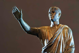 che riguarda la famosissima statua di bronzo dell'Arringatore, adesso esposta nel Museo di Firenze. Ecco