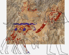 The painting, dating to the middle or late fifth dynasty (ca. 2450-2350 B.C.), has a lengthy agricultural scene that includes the driving of sheep