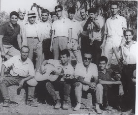 Una foto di gruppo durante gli scavi: il primo a sinistra in piedi è un giovanissimo Atzeni ed il terzo è il prof. Lilliu, suo benevolo mentore.