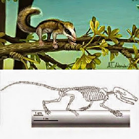 An illustration of Agilodocodon and Docofossor. The skeletal features of Agilodocodon (top left) suggeset it was an agile and active arboreal animal. The skeletal features of Docofossor (bottom right) suggest it lived in burrows and fed on worms and insects [Credit: April I. Neander/University of Chicago]